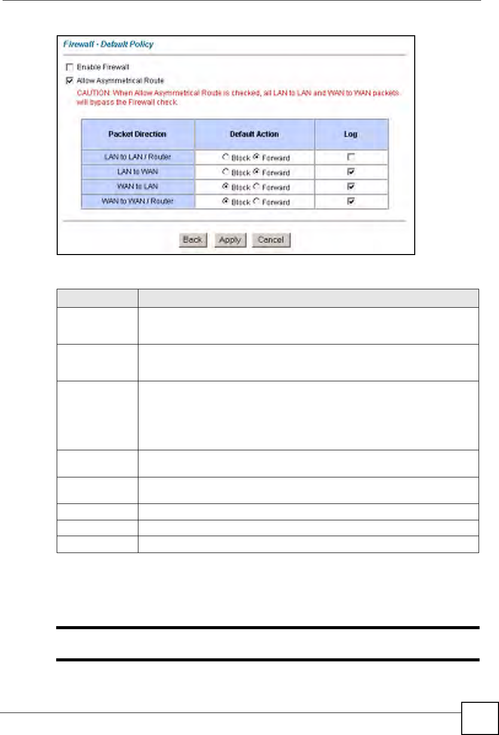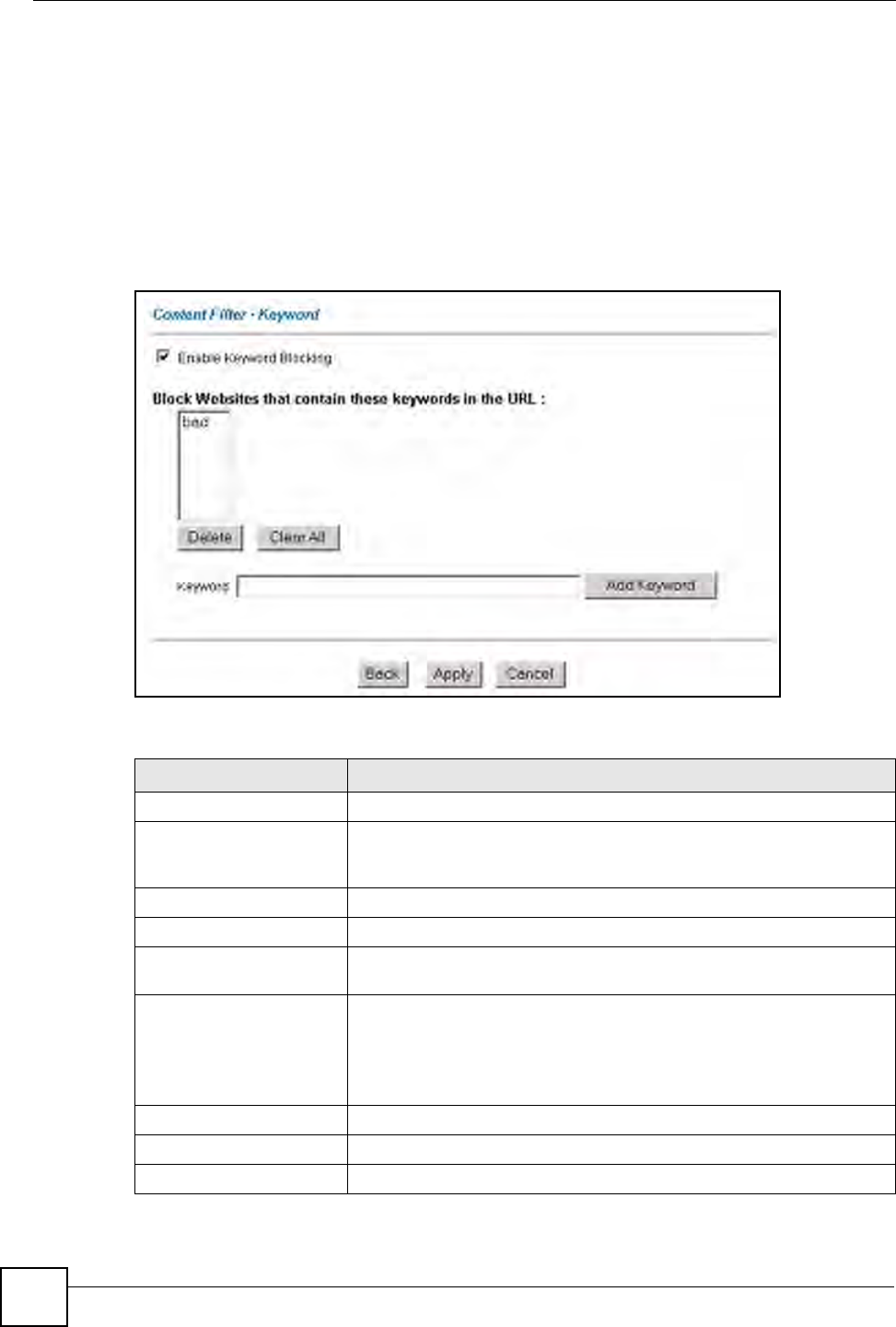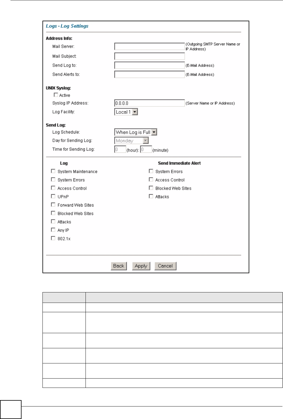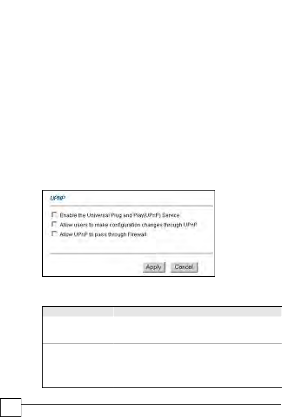 Apply Click Apply to save your changes back to the ZyXEL Device.