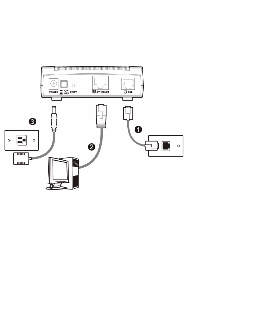 1DSL: Use a telephone wire to connect your P-660R-TxC’s DSL port to a telephone jack (or to a splitter, if