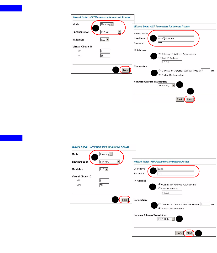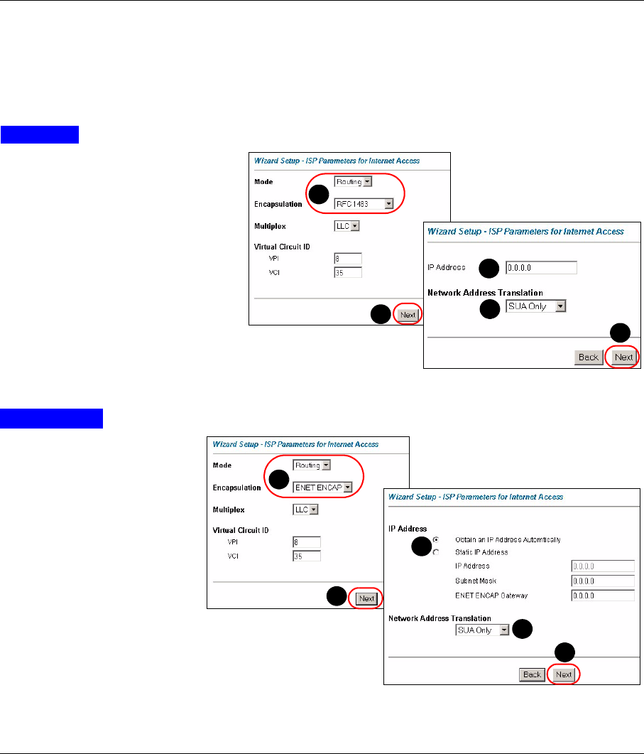 1Configure the Internet access settings in this step. The wizard screens vary depending on the Mode and