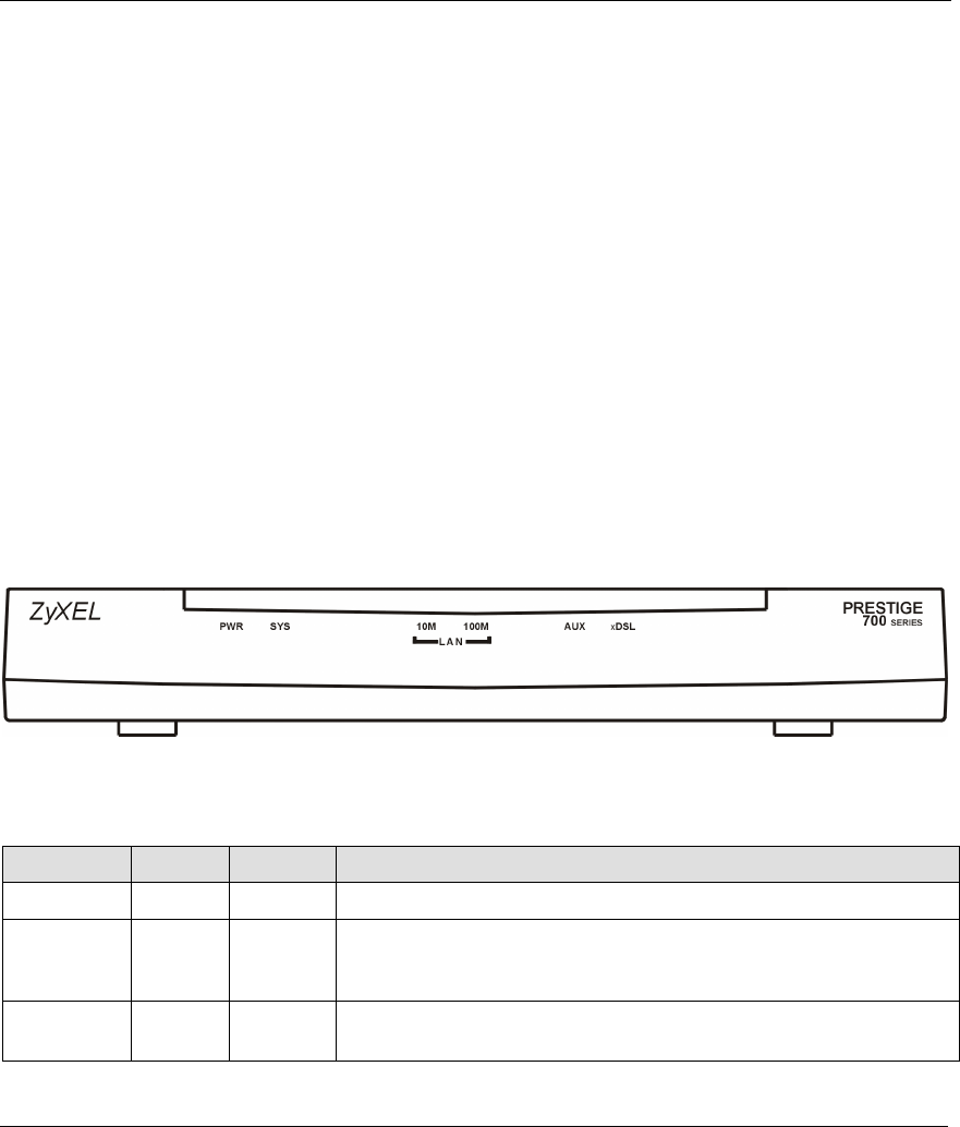 - Front Panel LEDs of the Prestige 782R