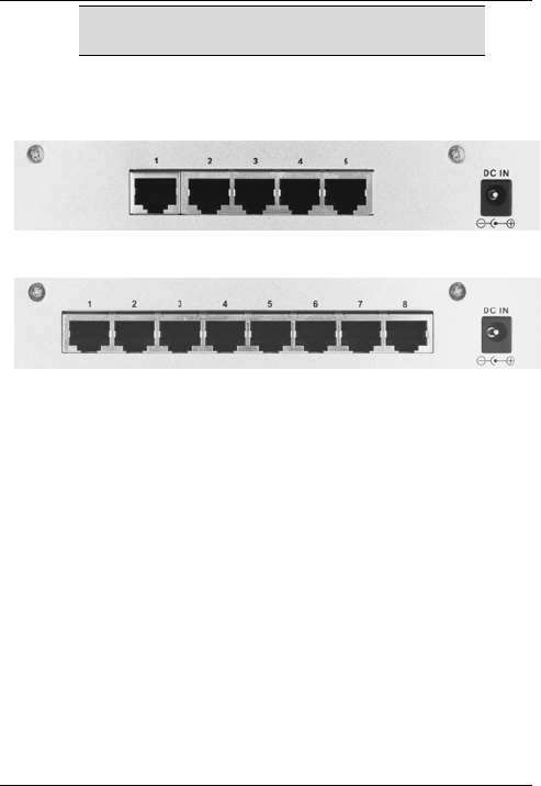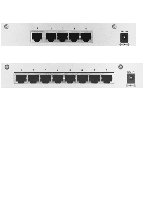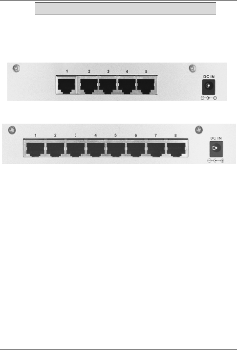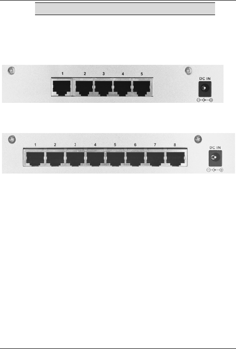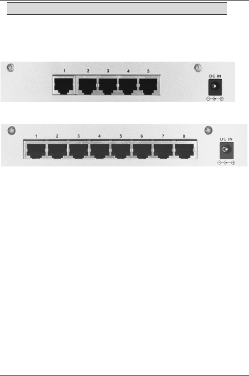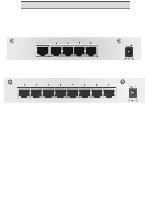依你所購買的交換器而有 5埠或 8埠10/100/1000M RJ-45 連接埠。而