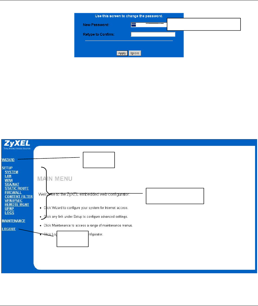 RESET You only need to use this button if you’ve forgotten the ZyWALL’s password. It returns the