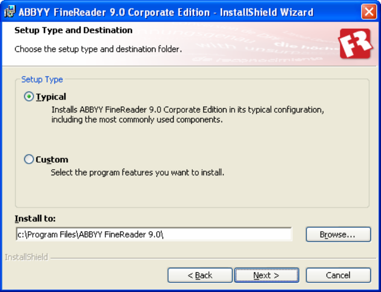 The automated installation methods give you speed and flexibility when installing ABBYY FineReader 9.0 Corporate Edition on a local