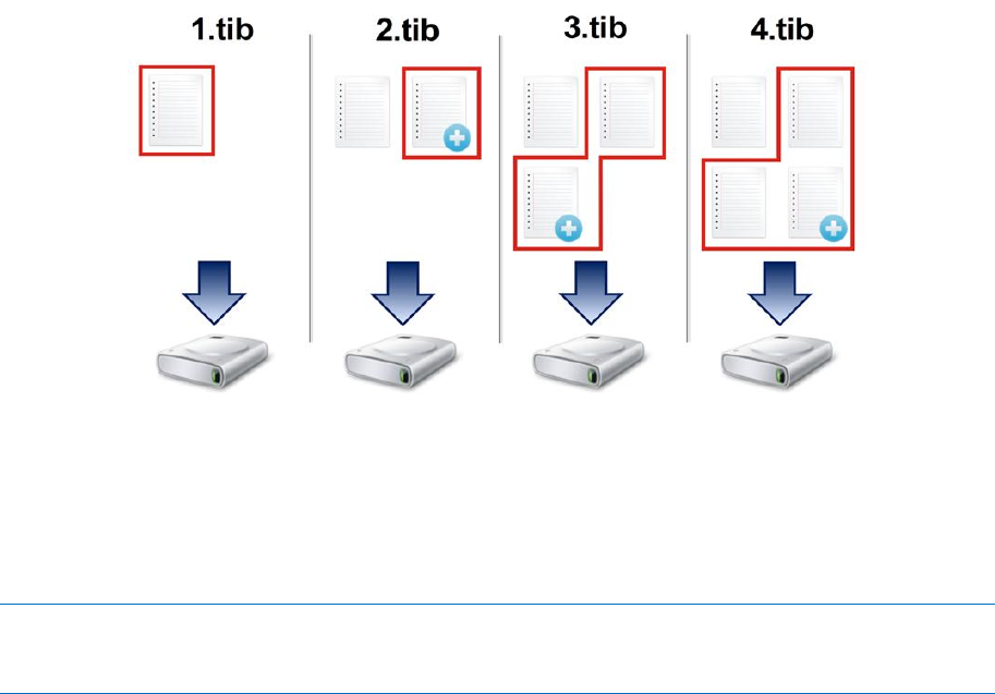 incremental backup versions (p. 256) that are