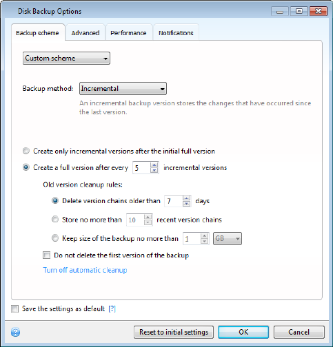 addition to the initial full backup version