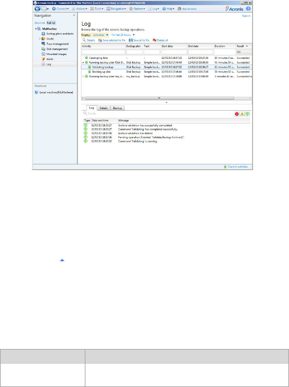 validation (p. 249) and other operations with backup archives (p. 238) which otherwise would be