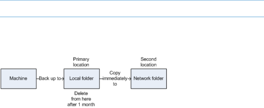 Copying a backup (p. 238) to another location. By default, the backup is copied immediately after