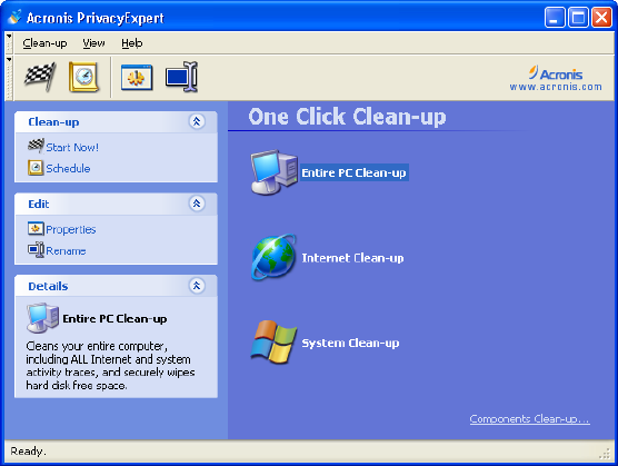 Acronis PrivacyExpert and DriveCleanser. Each description features the