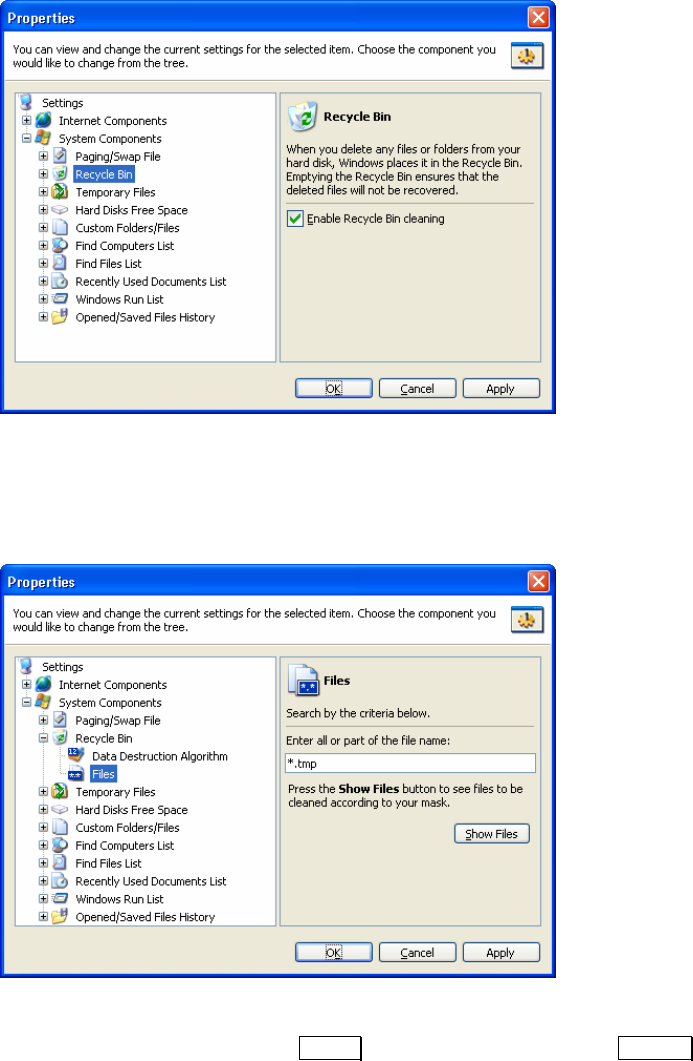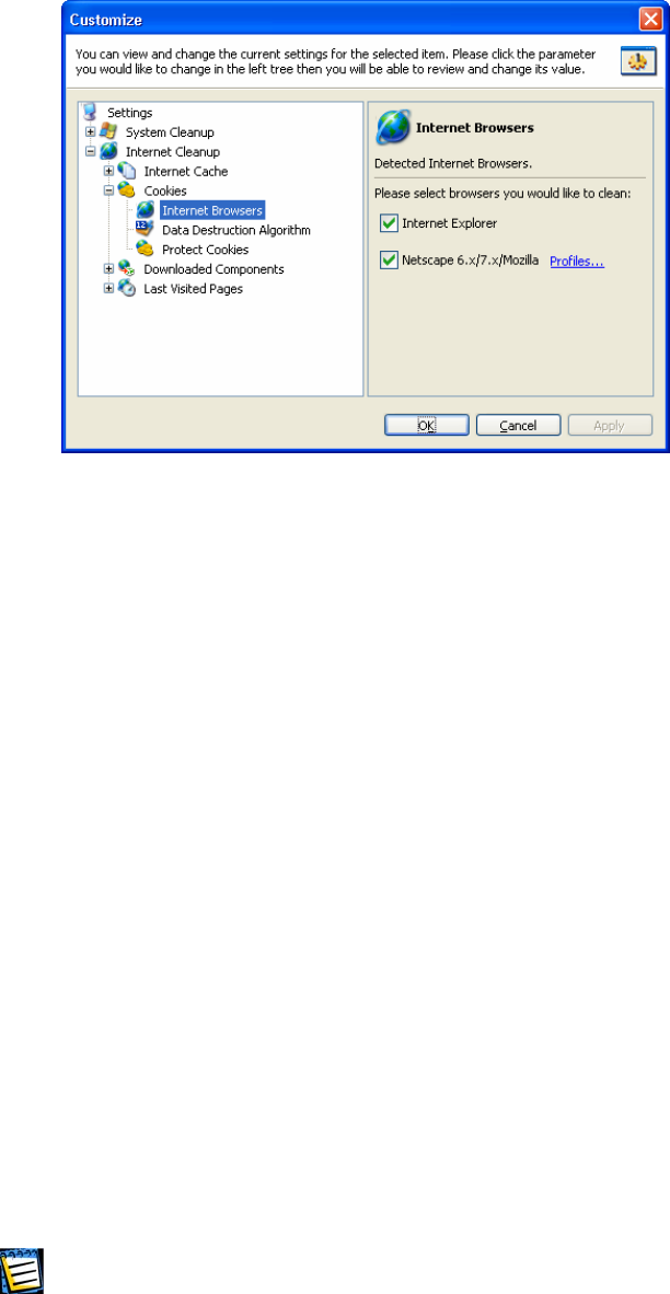 3.4.1 CLEAN-UP SETTINGS OF COMPONENTS RELATED TO WORKING ON THE INTERNET