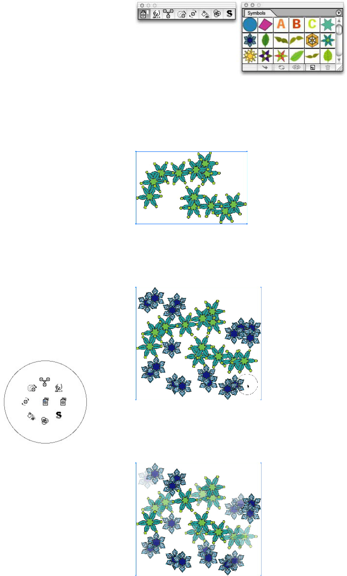 6. Manipulate the symbol instances using symbolism tools. Tear off the symbolism tools palette by clicking