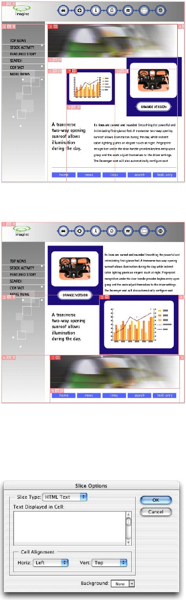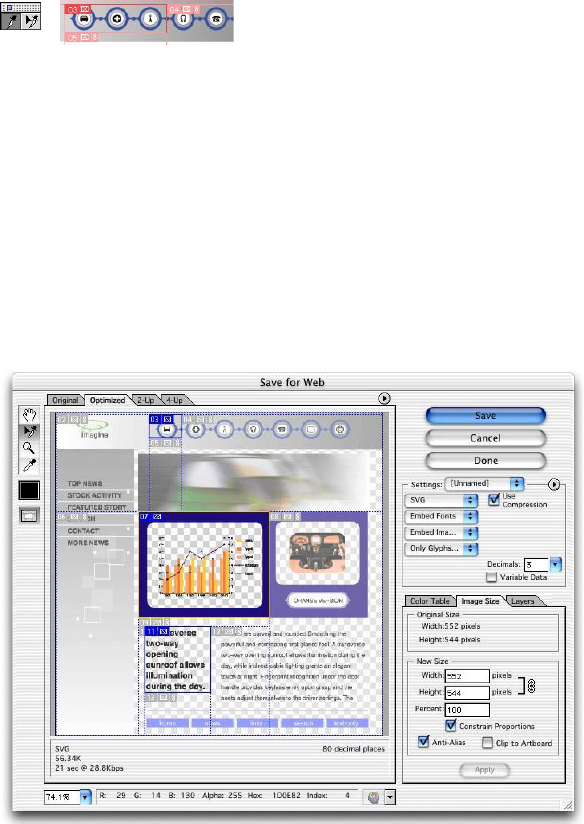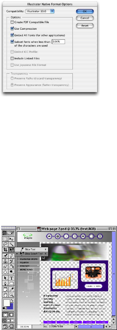 ImageReady software. As you’d expect, slices defined in Illustrator can be edited using familiar tools in either
