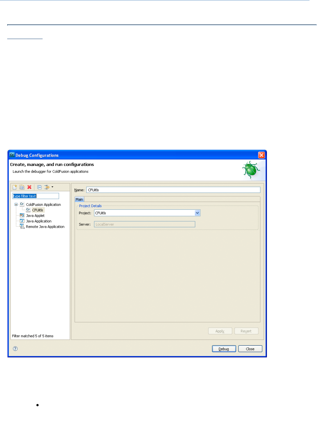 Enter the following URL in your web browser: http://_localhost_/_project name_/index.cfmThe debugging