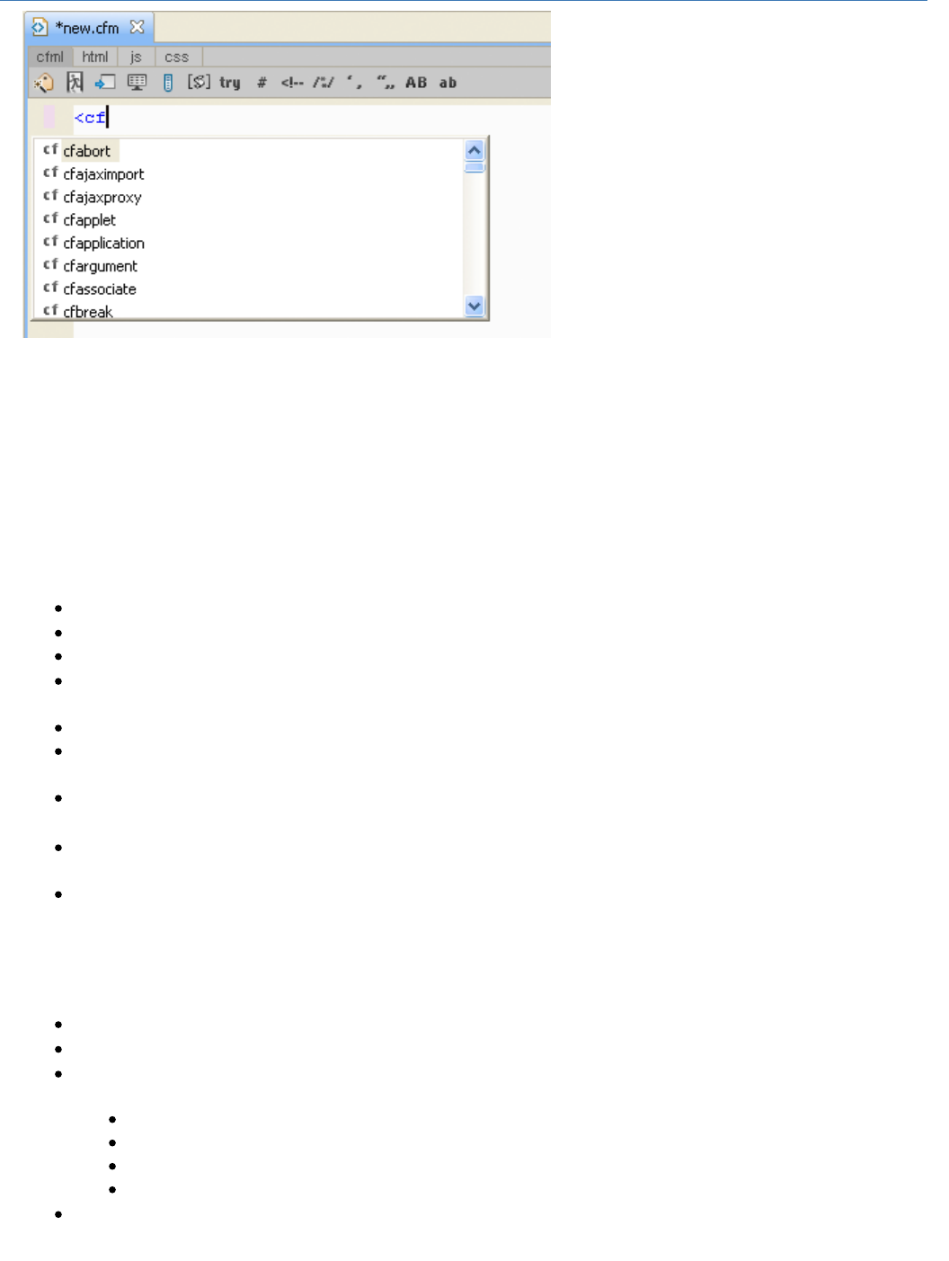 - Code Editing in ColdFusion Builder