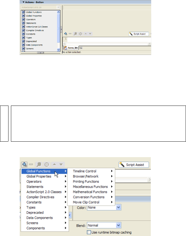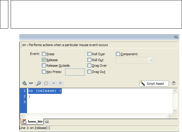 21. With the button selected, open the Actions panel (F9) and enter the