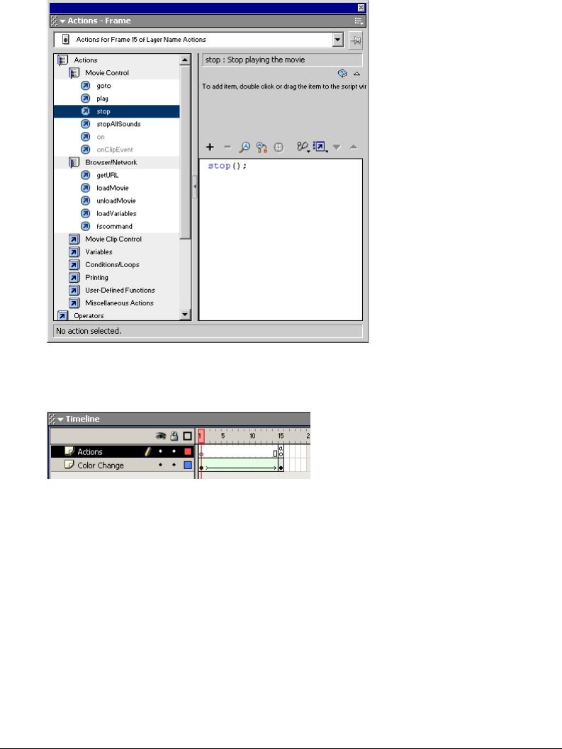 1Create a new layer and name it Frame Actions. Select Frame 1, then choose Insert > Blank