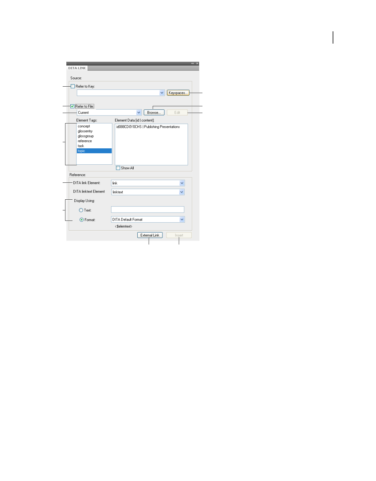 Choose Set Available Elements Esc Shift+e Shift+o Shift+c