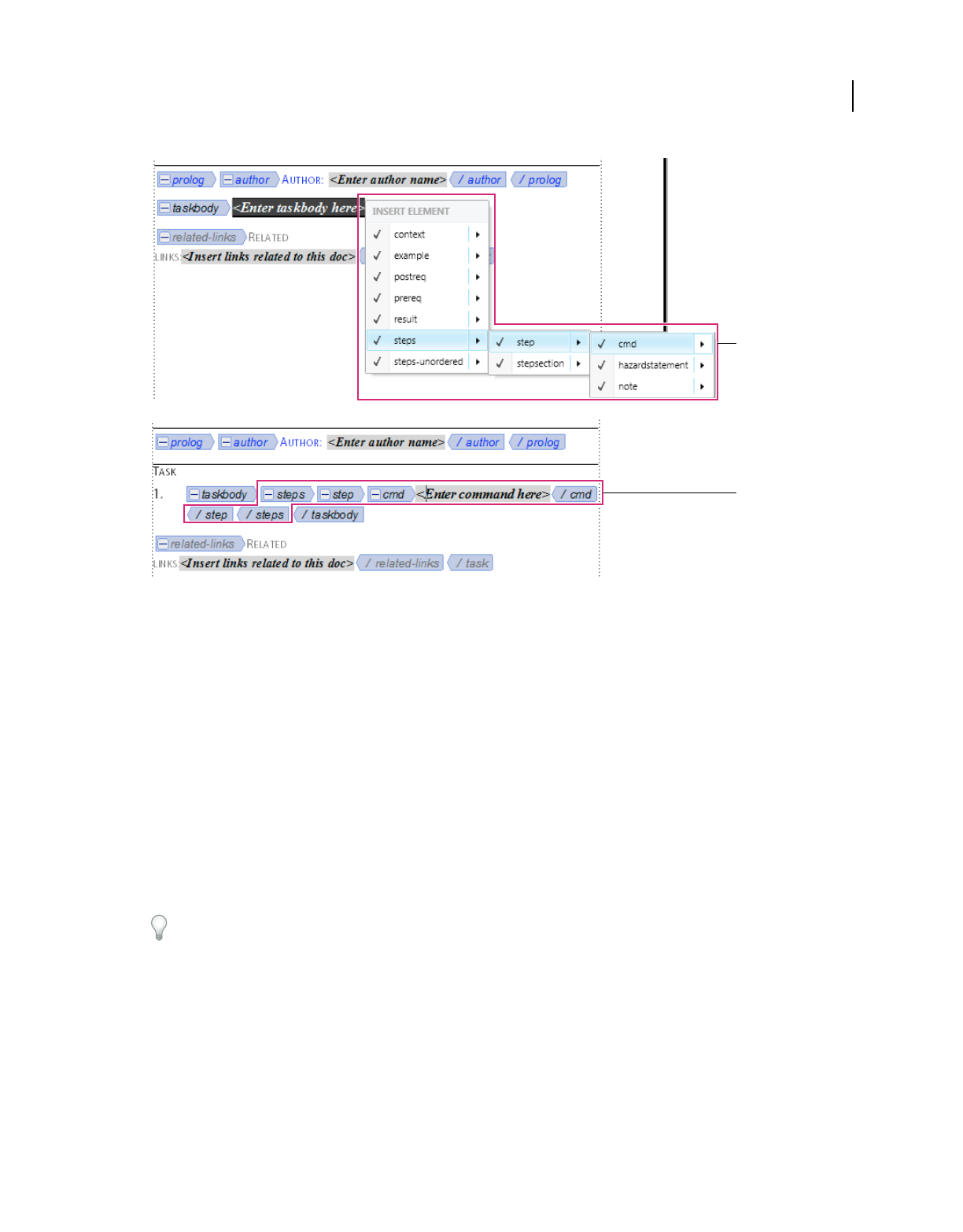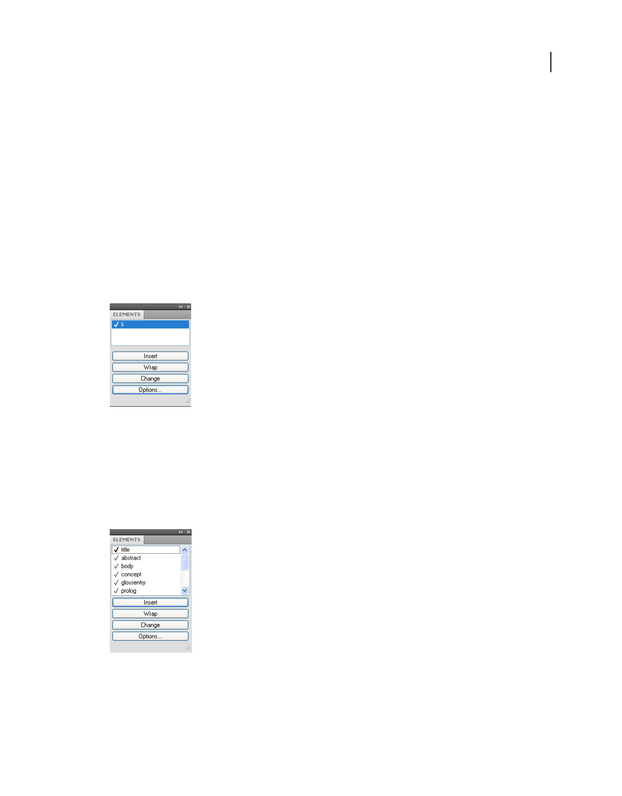 Choose New Element Options Esc Shift+e Shift+o Shift+i