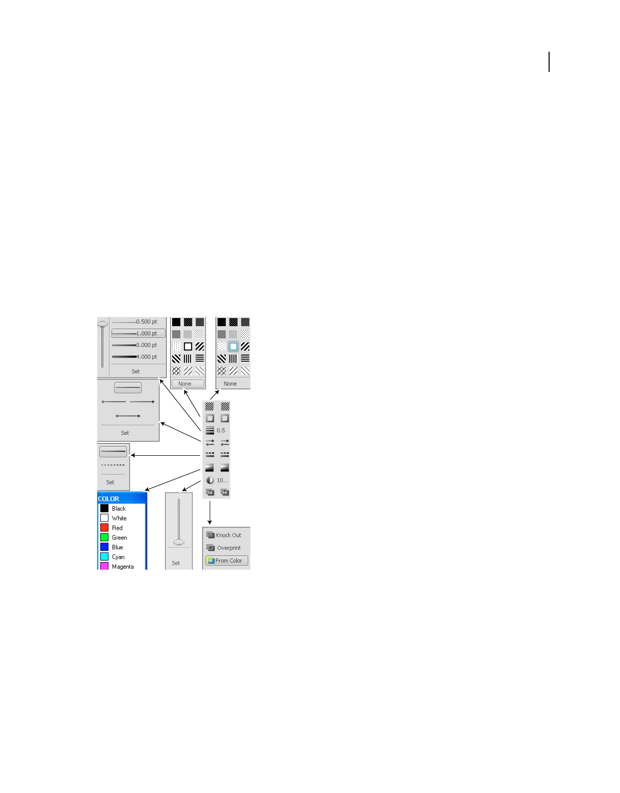 Nudge an object 1 point/6 points Alt+arrow key/Alt+Shift+arrow key