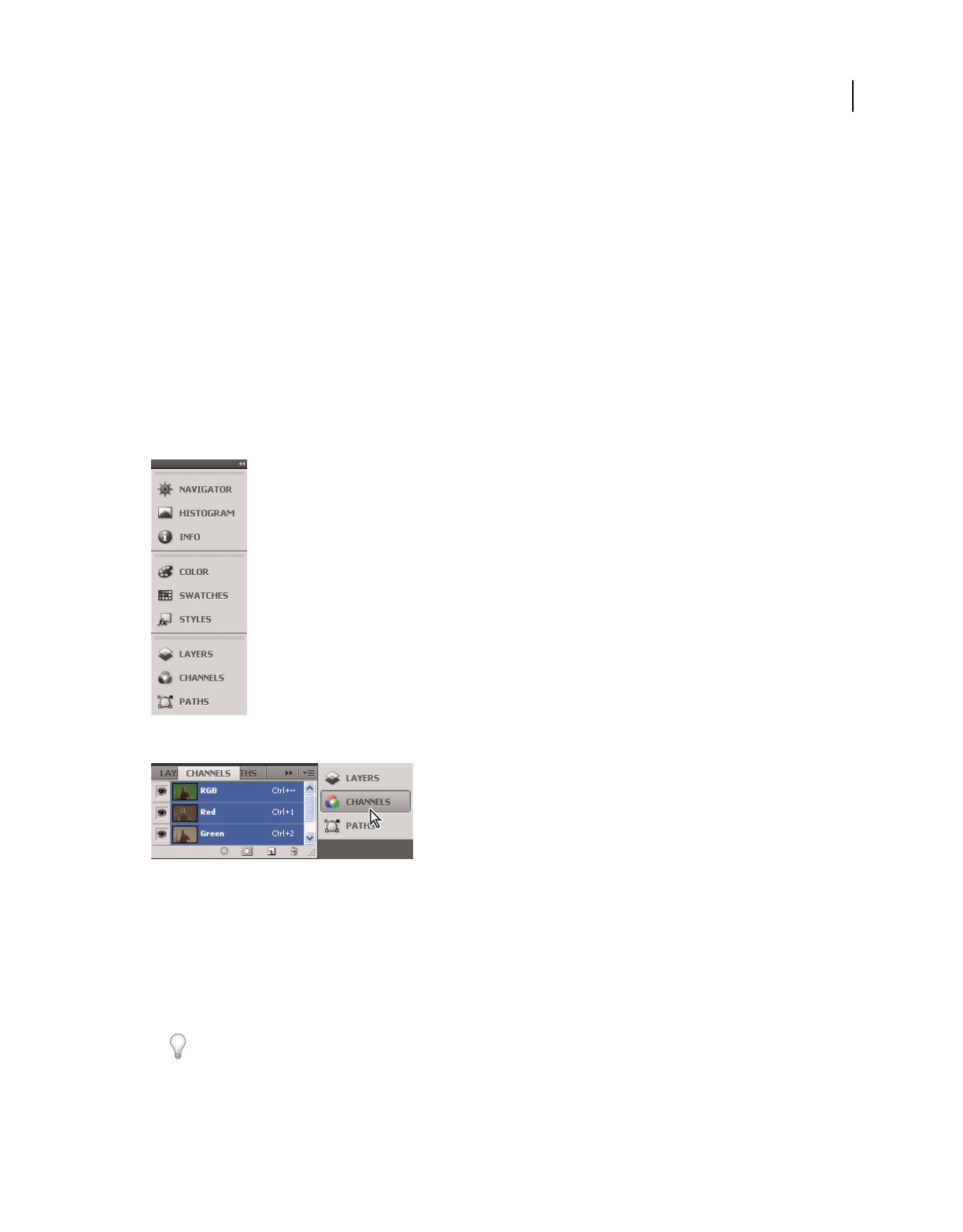 Show/hide all layers but the selected one Alt-click eye icon Option-click eye icon