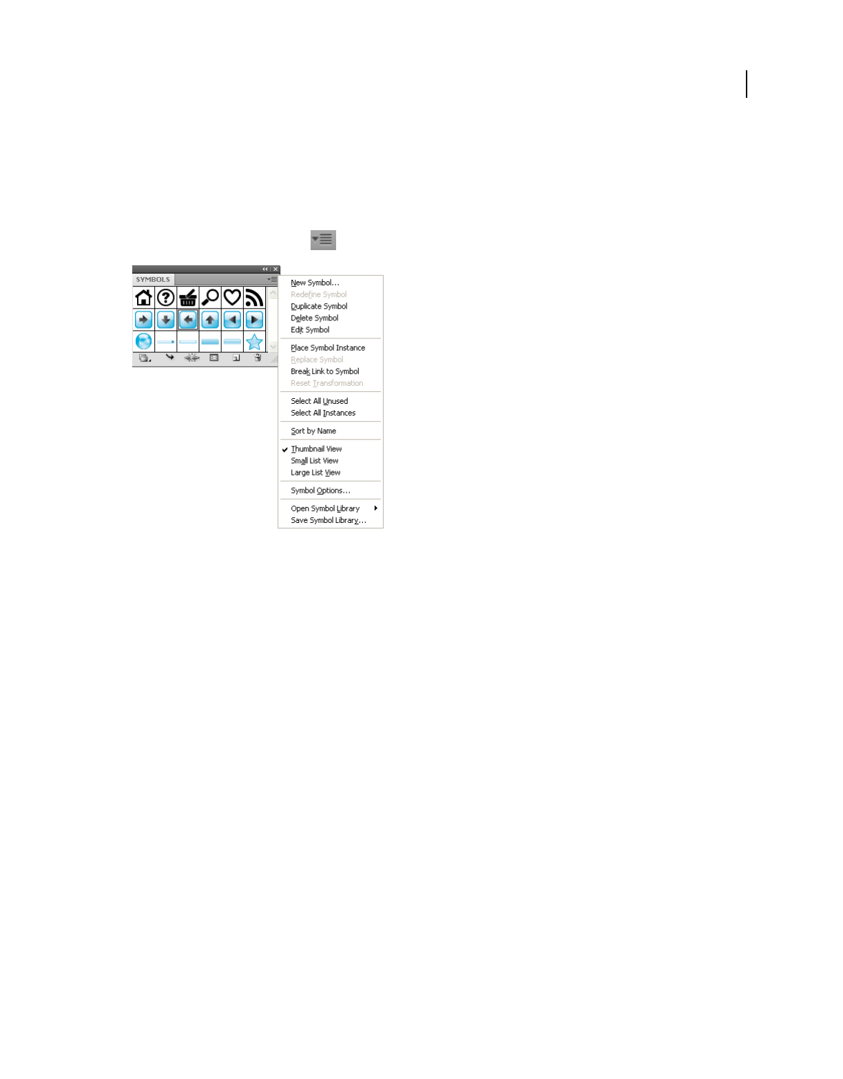 Show/hide Symbols panel Shift + Ctrl + F11 Shift + Command + F11