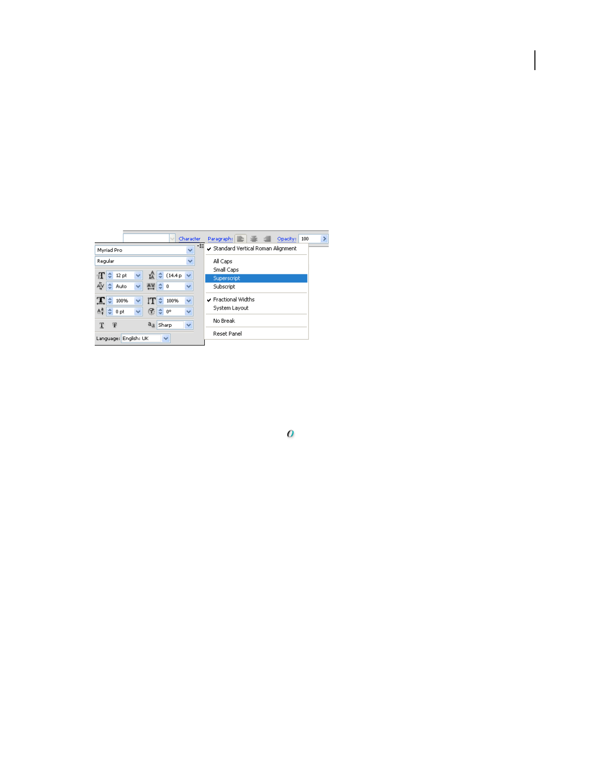 Increase/decrease opacity in 1% increments Click opacity field + Up Arrow or Down Arrow Click opacity field + Up Arrow or Down Arrow