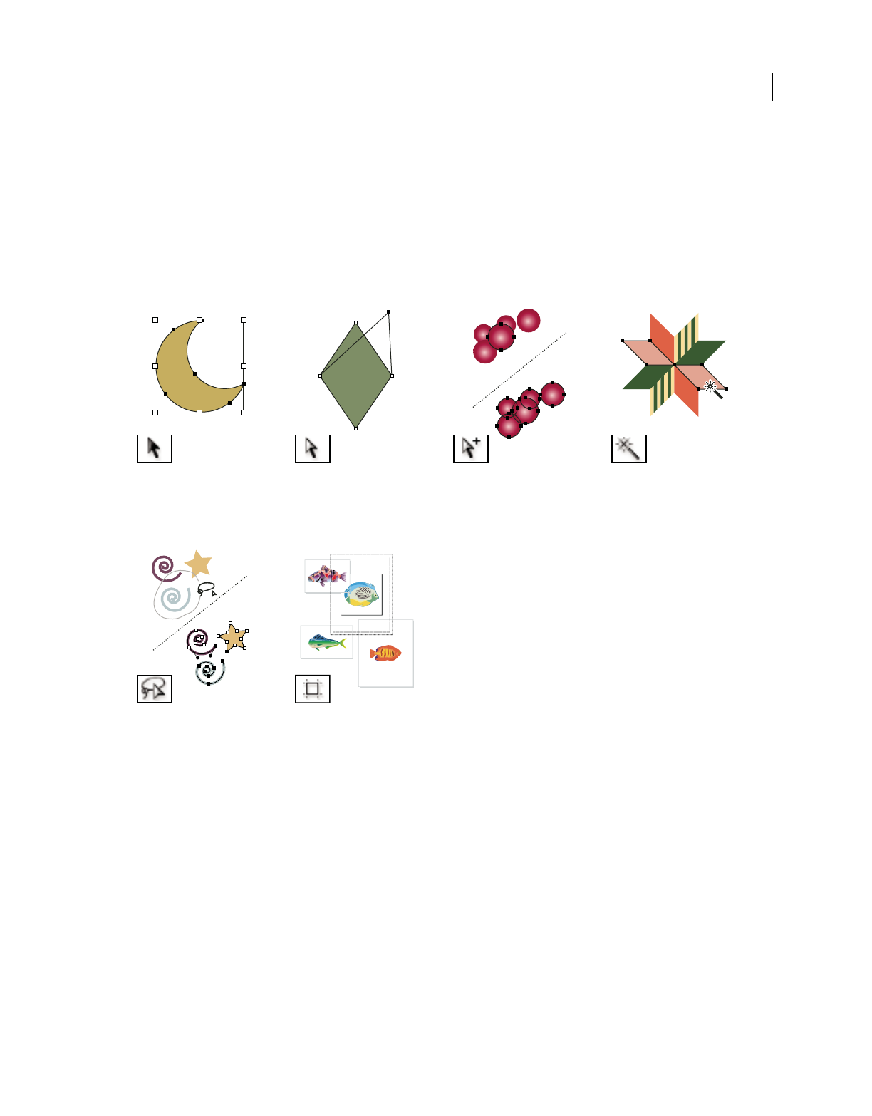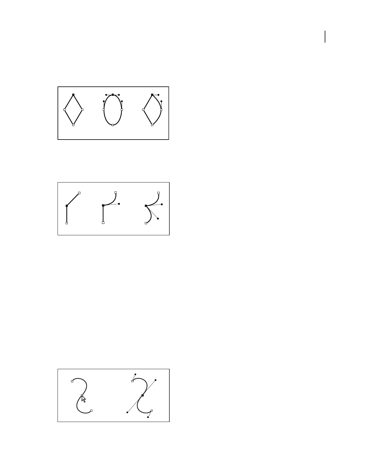 - Select paths, segments, and anchor points
