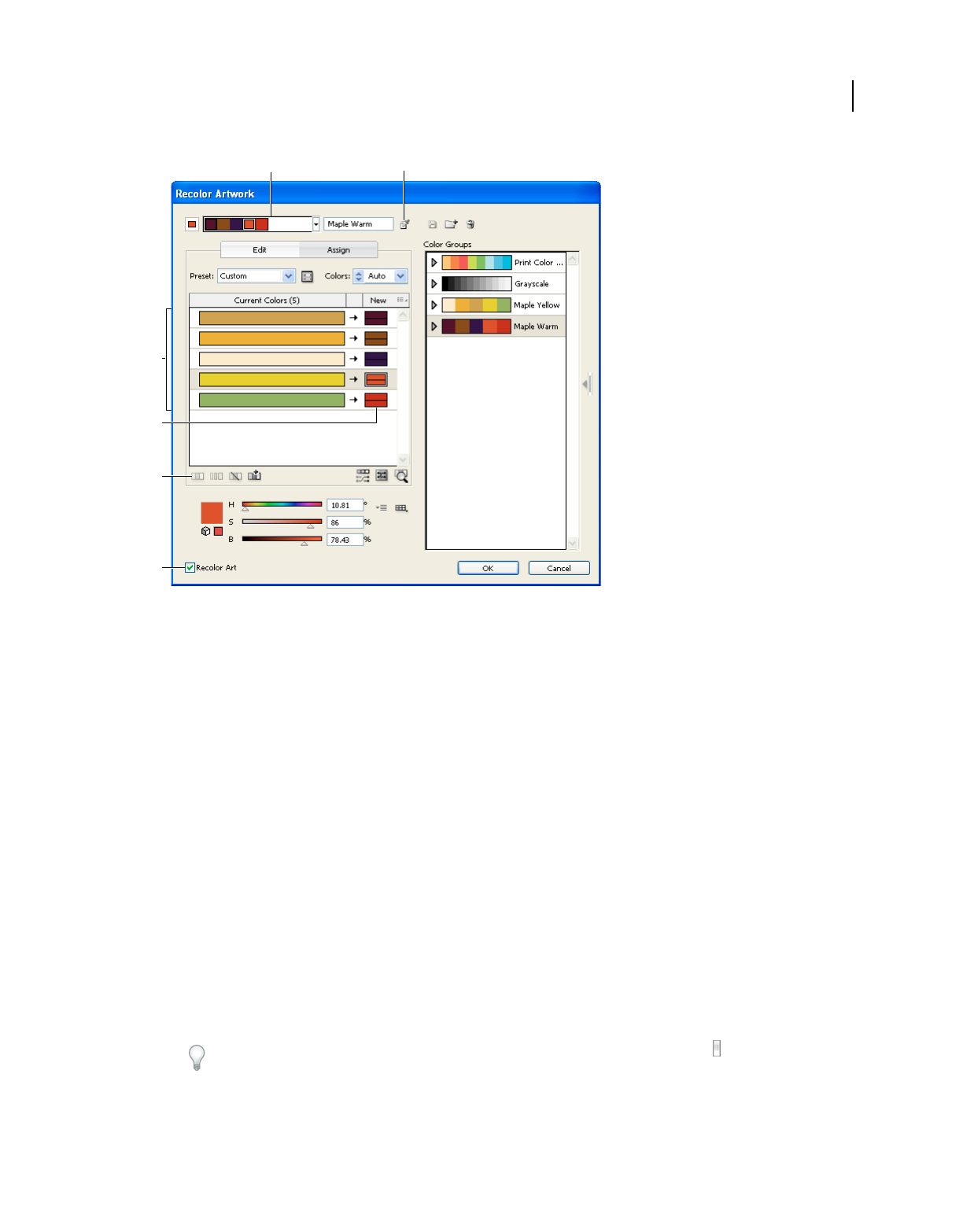 - Edit Colors/Recolor Artwork dialog box overview