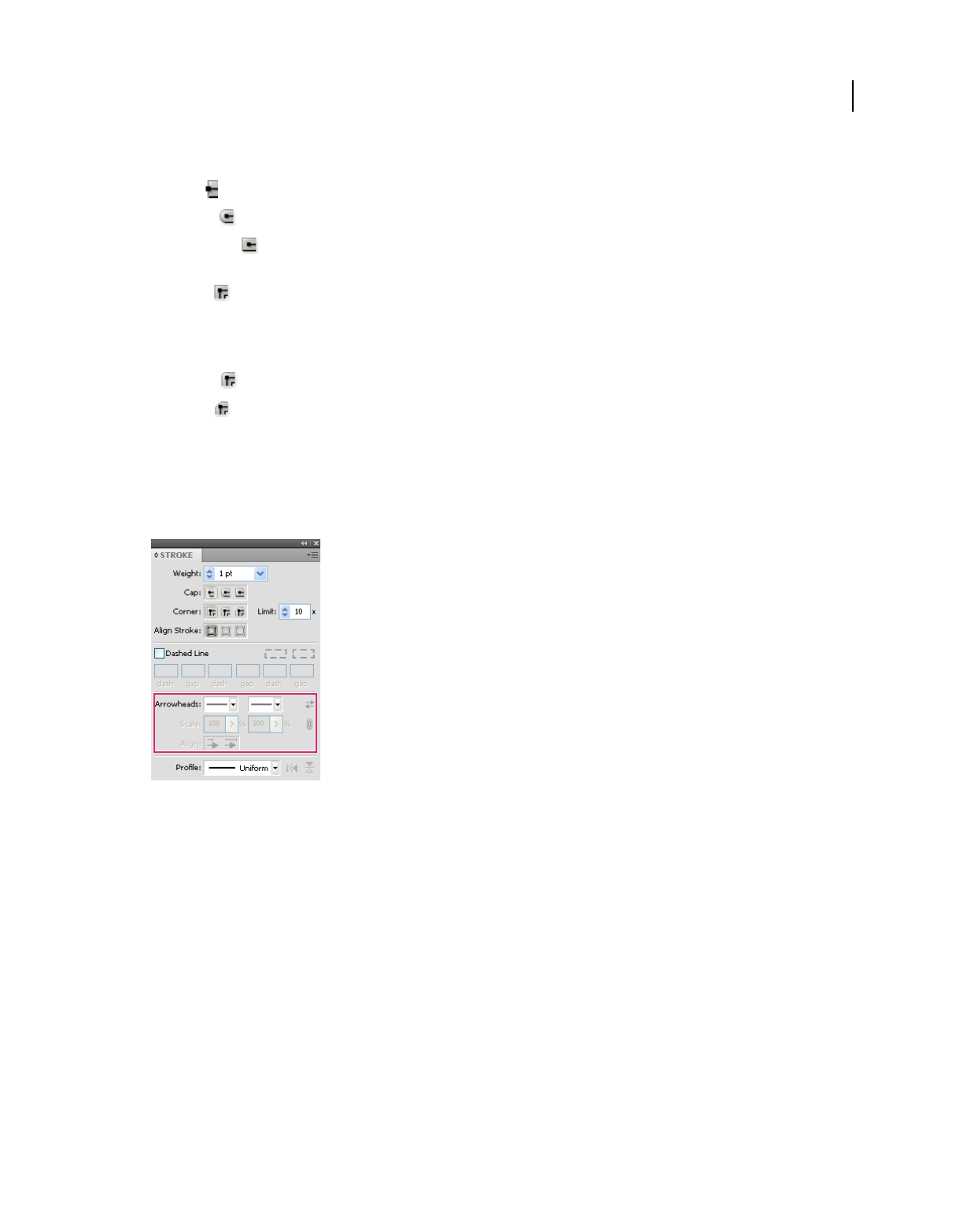 Show/hide Stroke panel Ctrl + F10 Command + F10