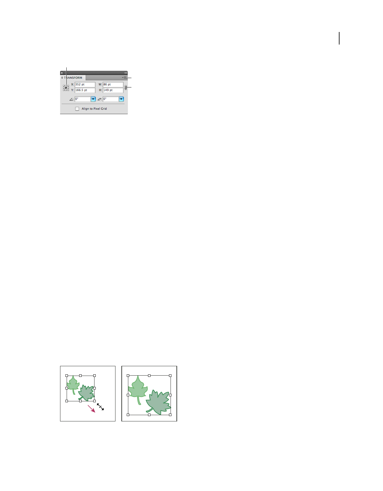 Keys for the Transform panel