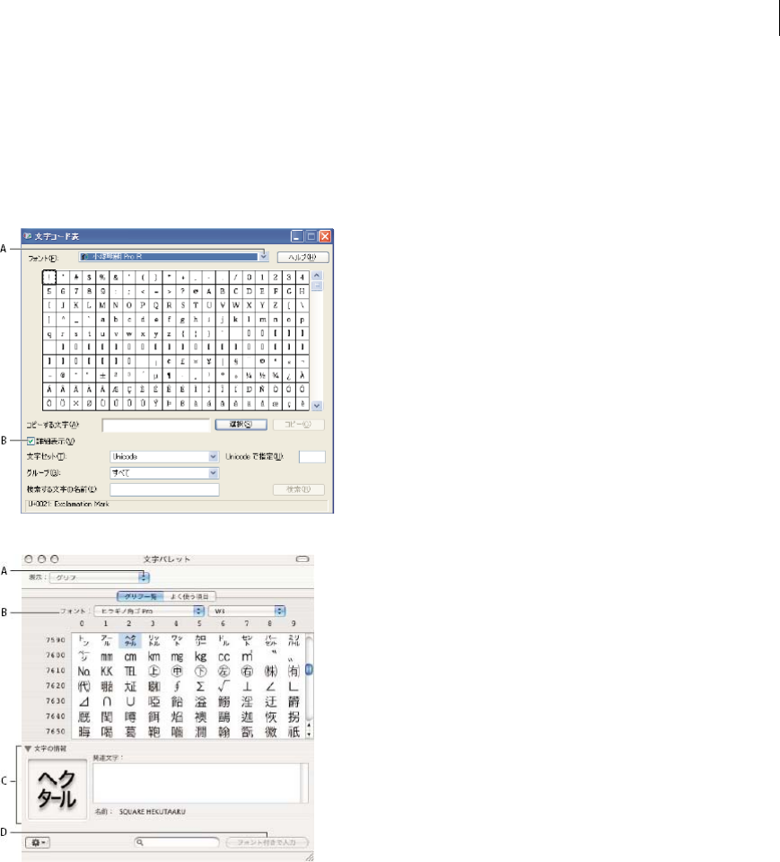 - Glyphs panel