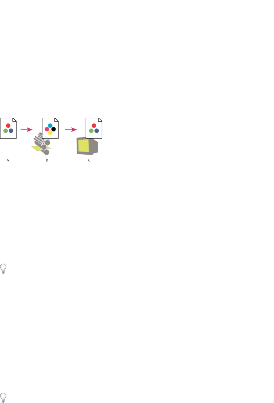 output device’s profile). C Monitor displays proof profile’s interpretation of document’s color values.
