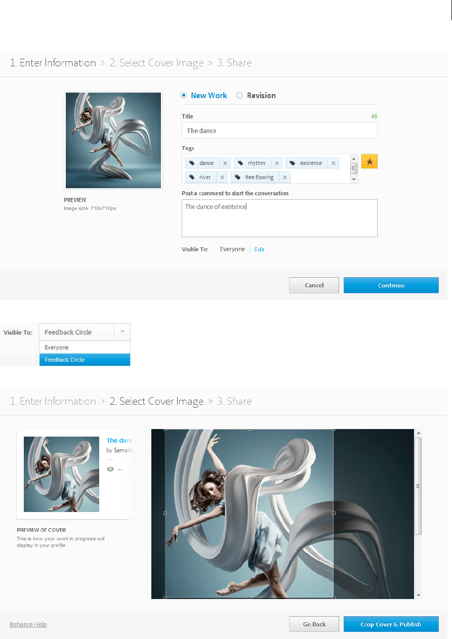 A Document is created in its working color space. B Document’s color values are translated to color space of chosen proof profile (usually the