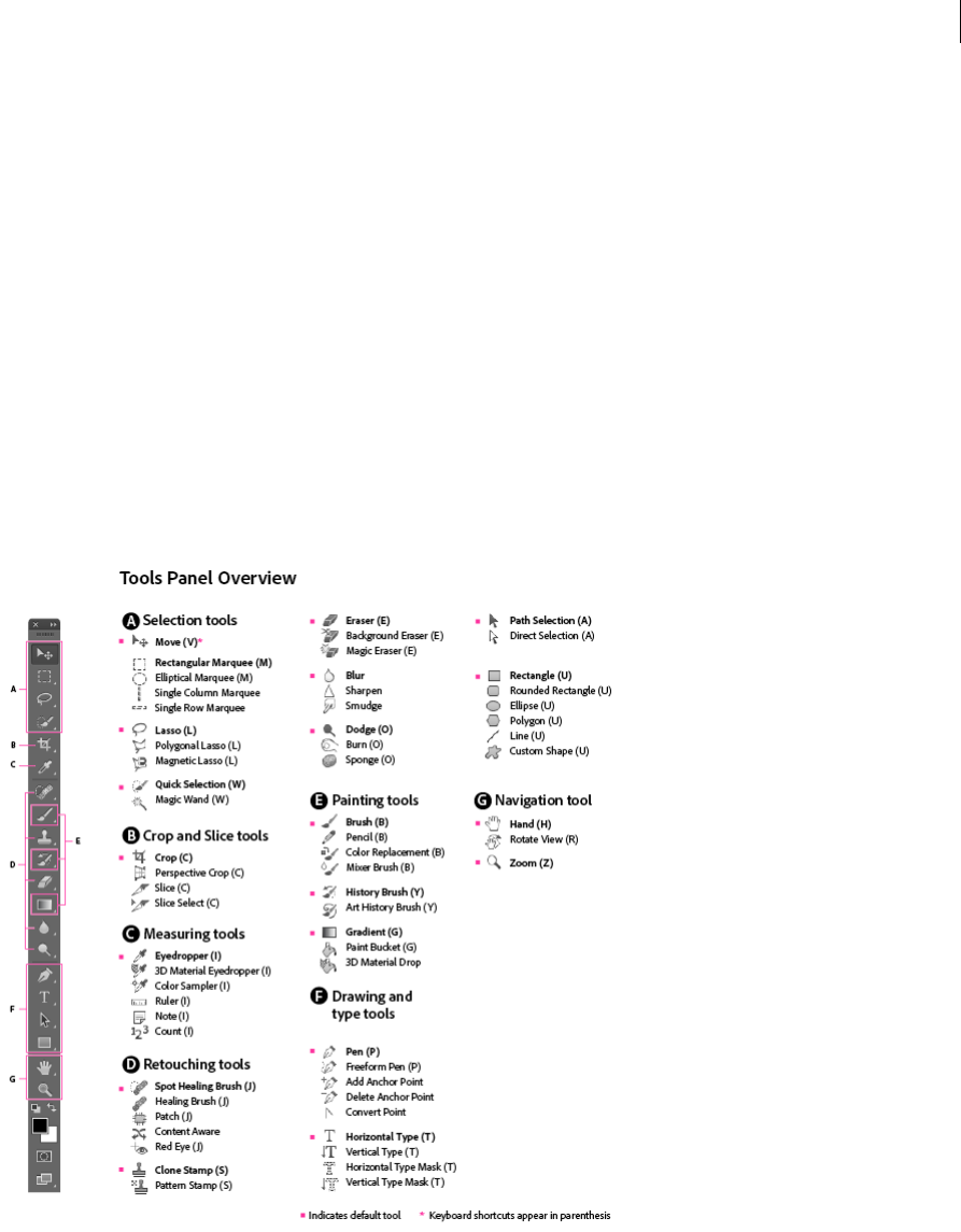 - Keys for 3D tools (Photoshop Extended)