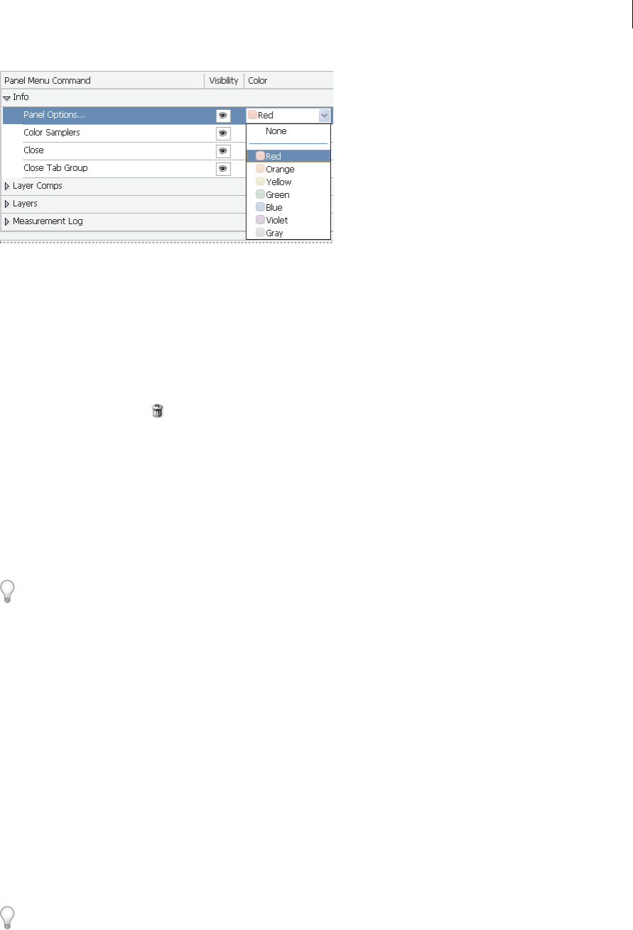 - Panels and menus