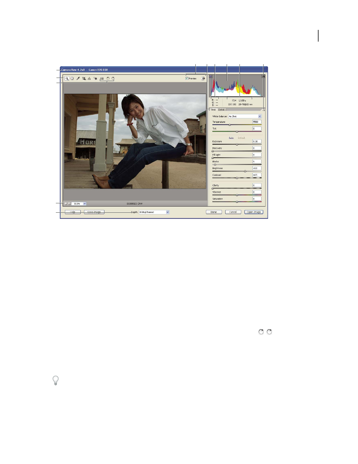 - Keys for the Camera Raw dialog box