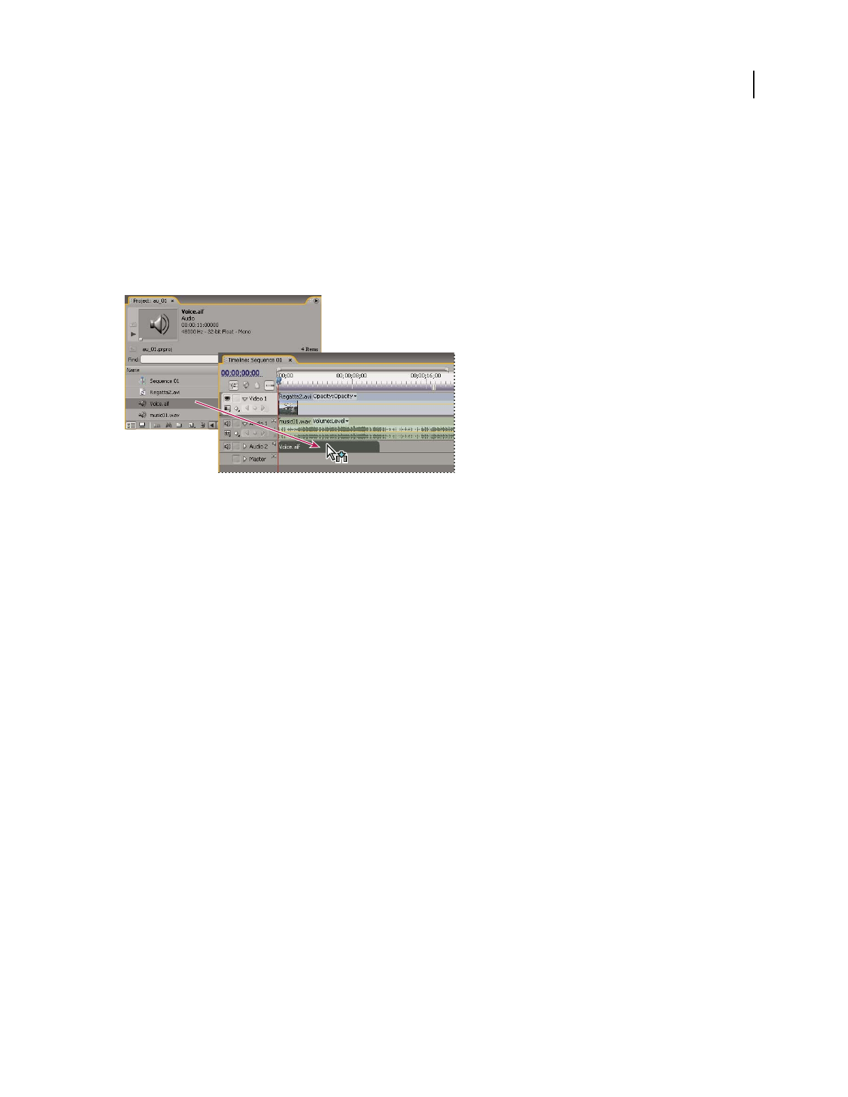 - Specify source tracks to add to a sequence