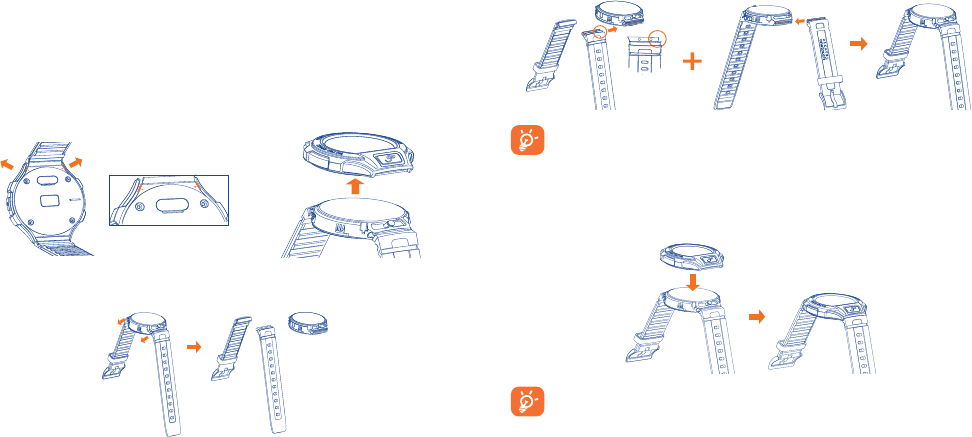 Install the GO WATCH bands by sliding the flat side of the bands