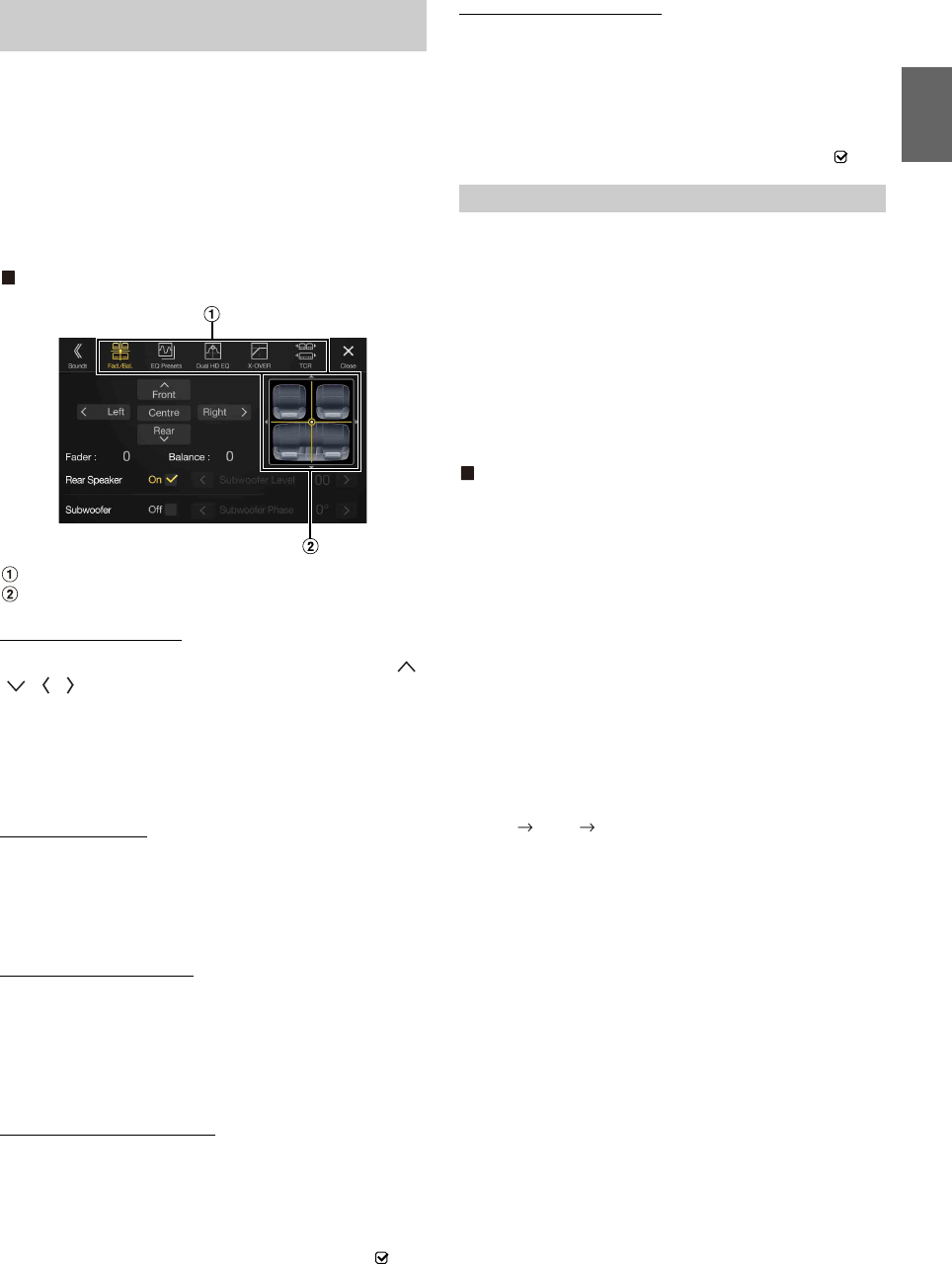 - Setting the Balance/Fader/Rear Speaker/Subwoofer