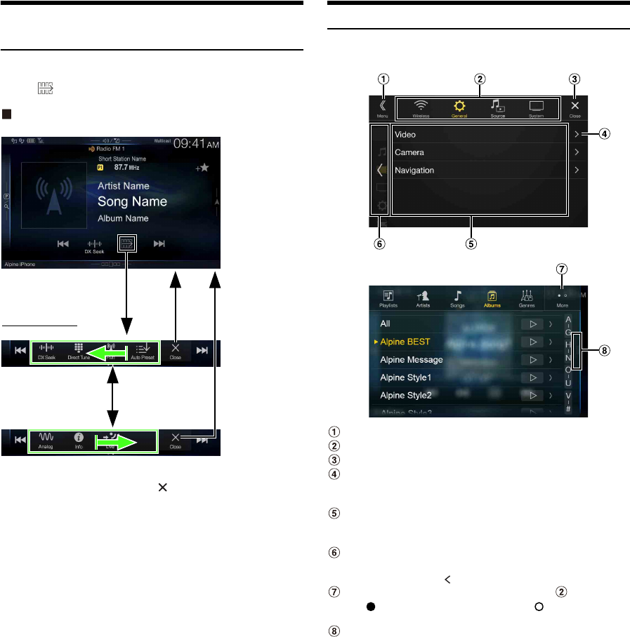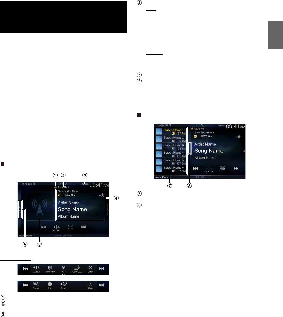 - Displaying Radio Text (RBDS FM Radio mode only)