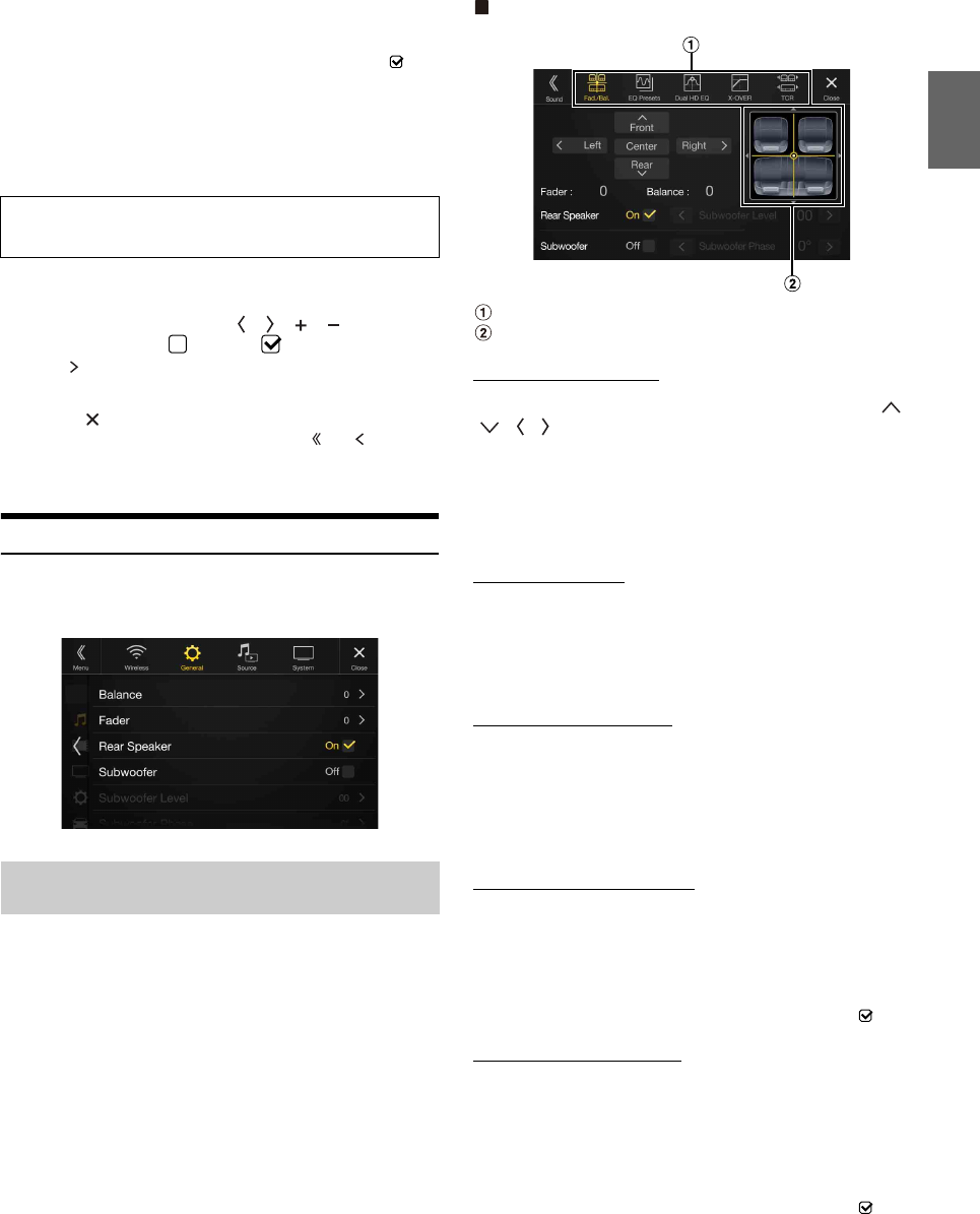 - Setting the Balance/Fader/Rear Speaker/Subwoofer