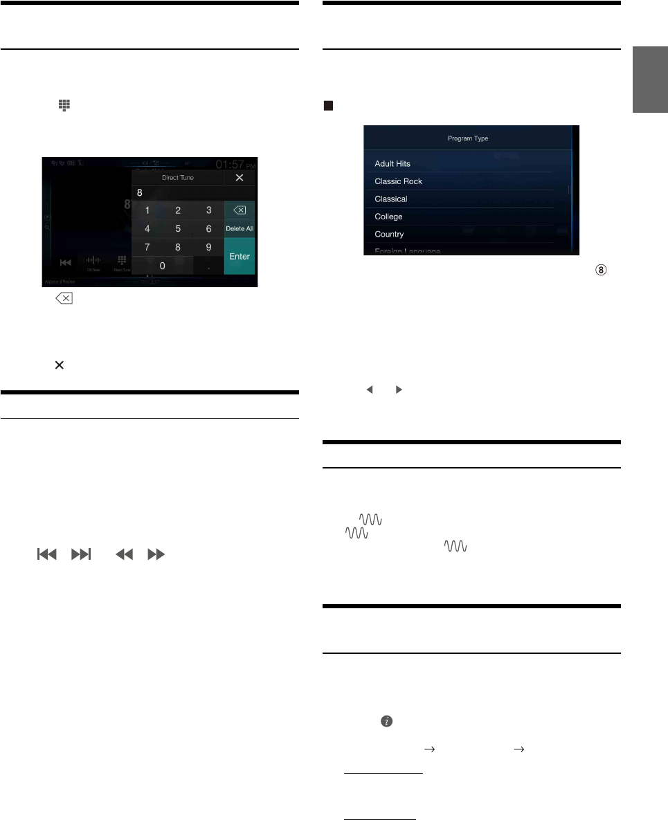 - Selecting the Receivable Program Type (RBDS FM Radio mode only)