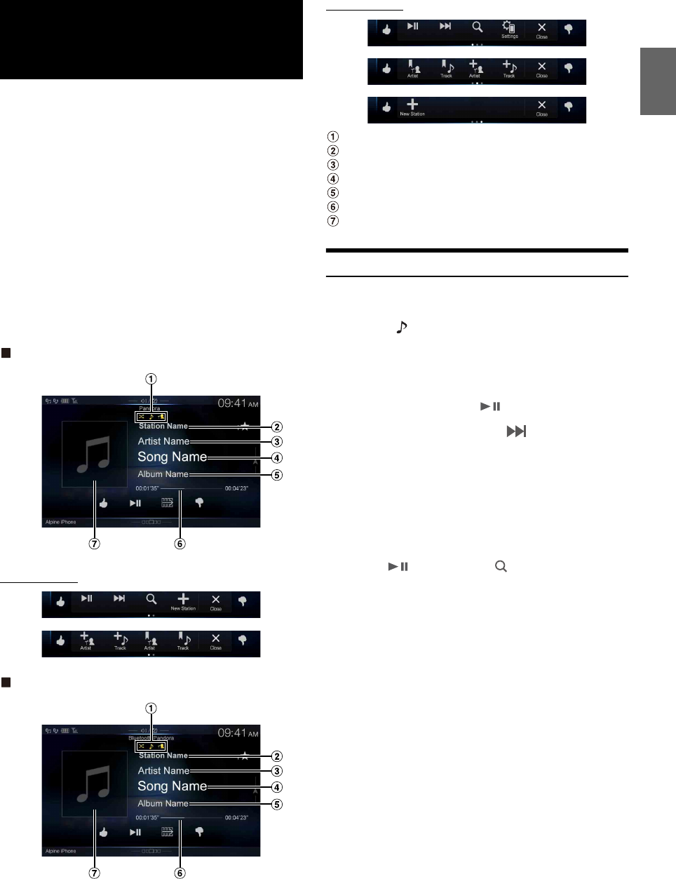 - Pandora® internet radio (optional)