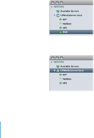 Server pop-up menu 112