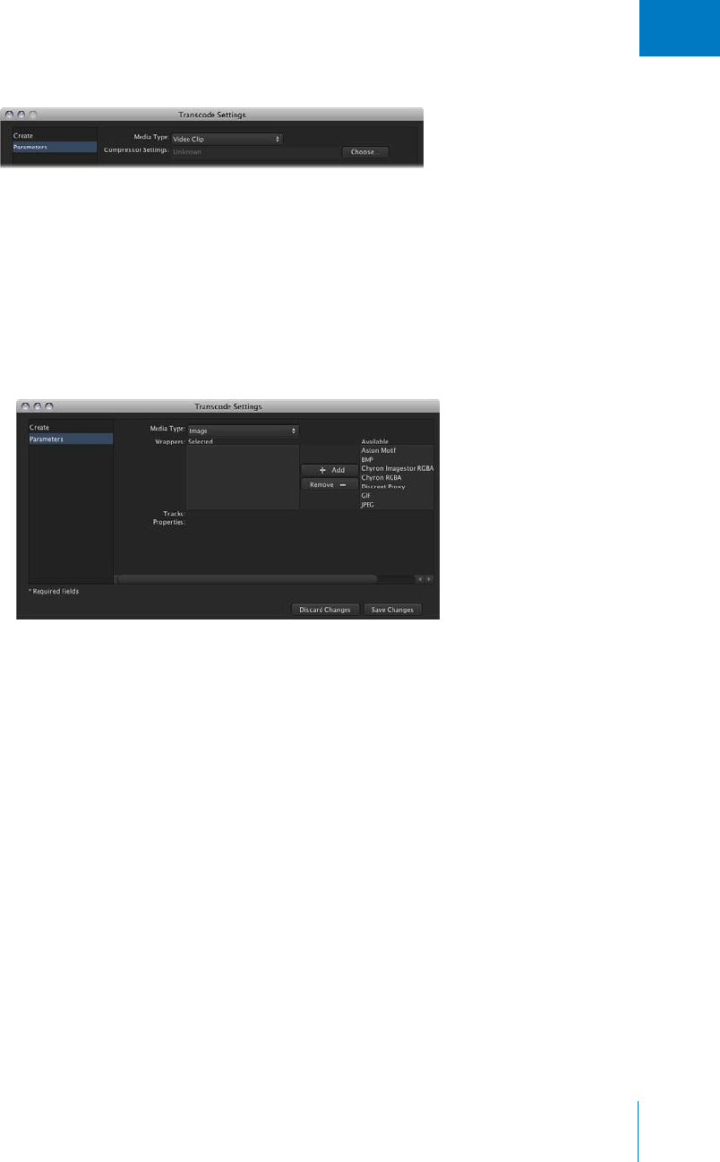 Transcode Settings pane 188