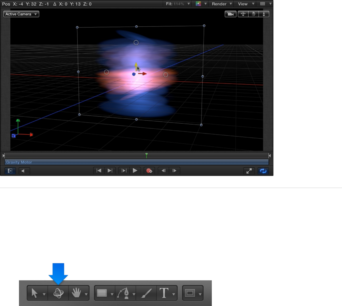 adjust the 3D transform controls in the HUD.