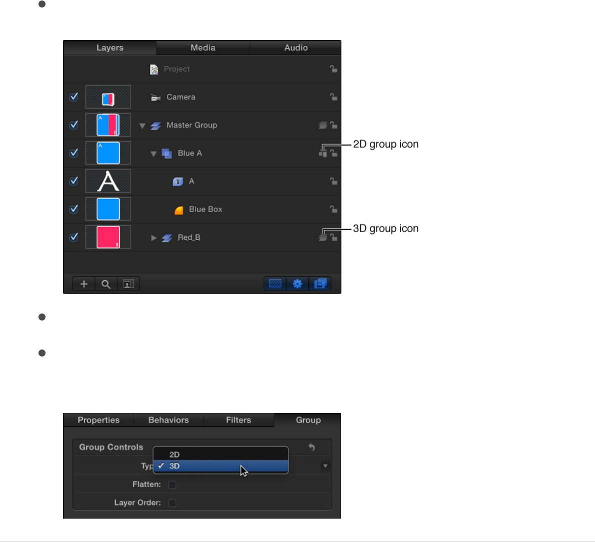 3D scene icons are onscreen wireframe representations of