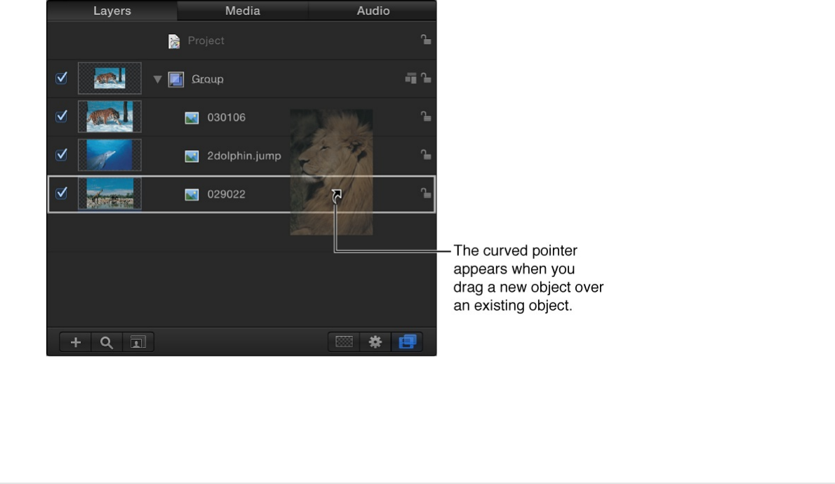 Dragging an object into the Layers list or clicking the Apply button