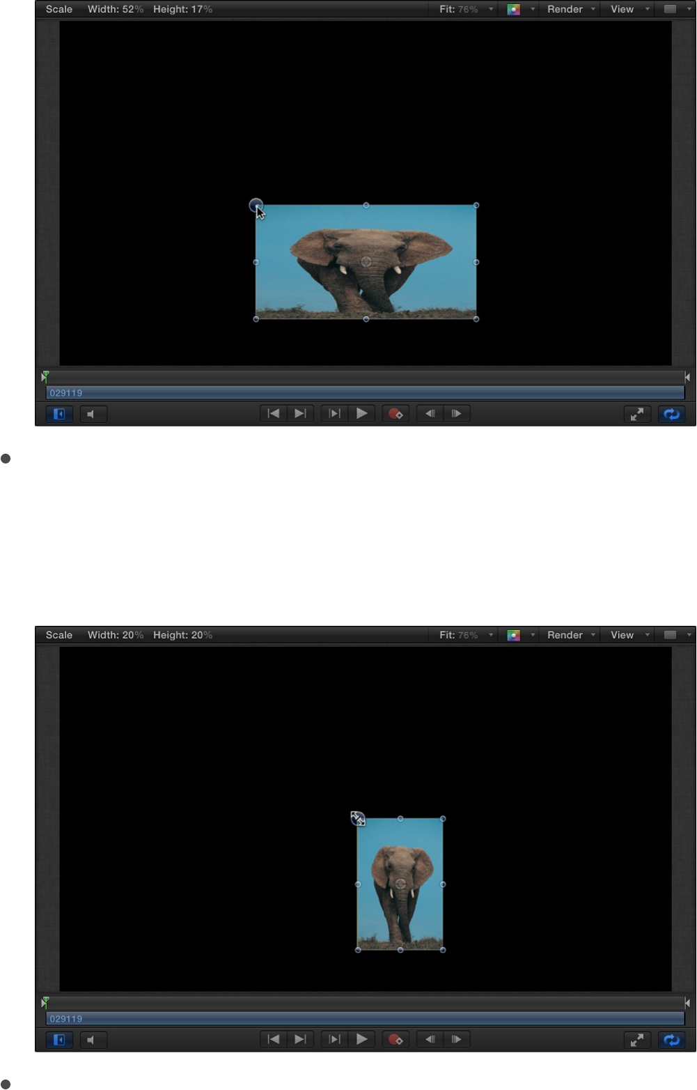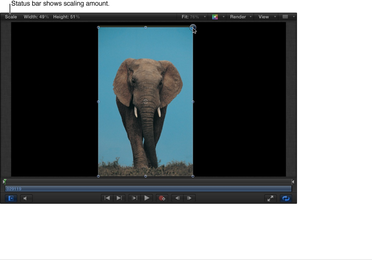2. In the Properties Inspector, drag the Scale slider.