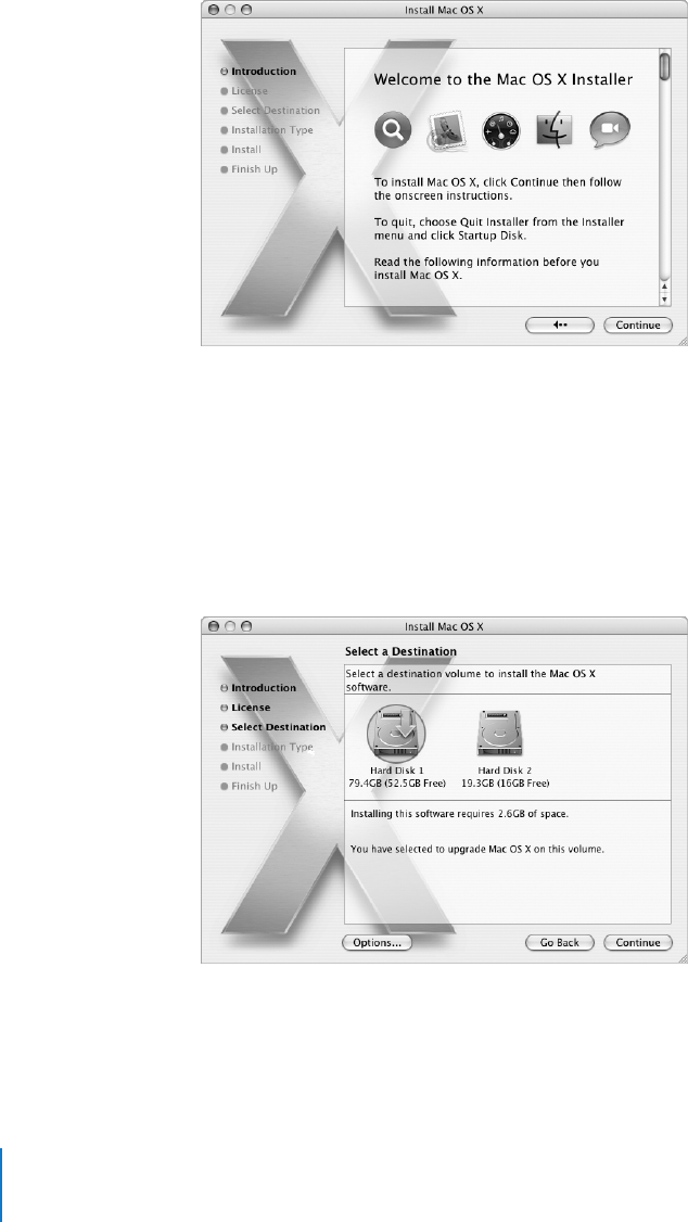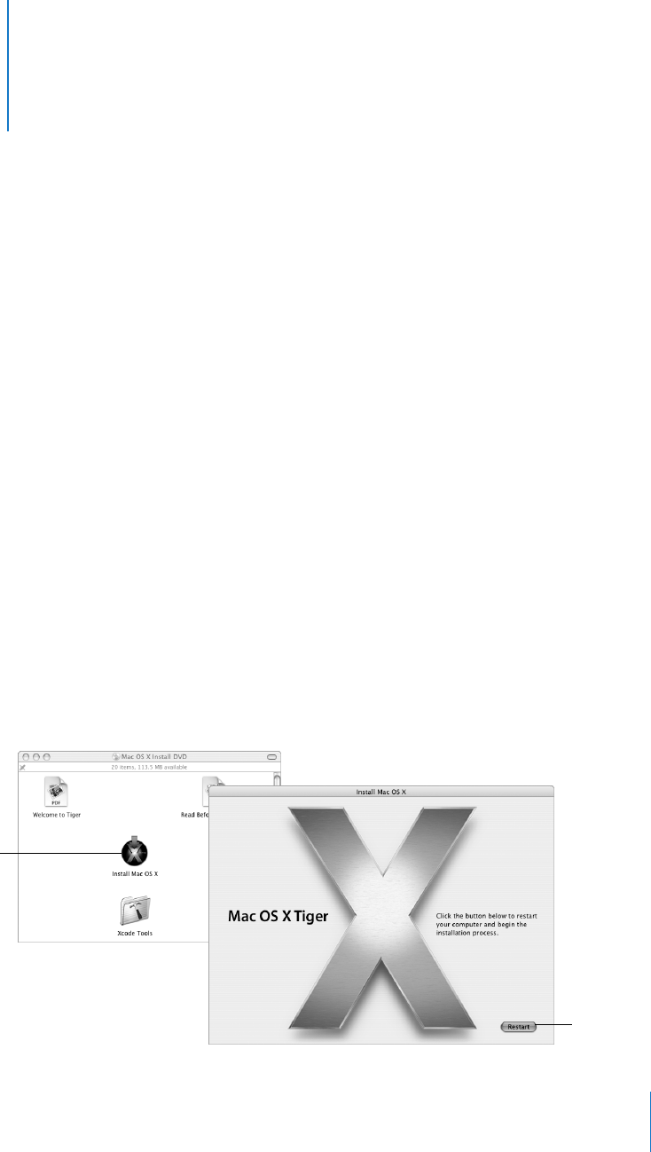 To begin a custom installation of Mac OS X Tiger, follow these steps: