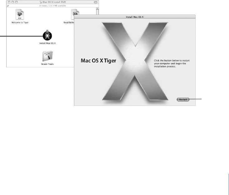 Double-click the Install Mac OS X icon, then click Restart. The Installer opens